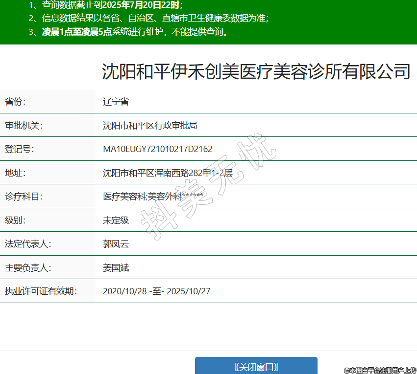 沈阳和平伊禾创美医疗美容诊所有限公司,诊疗科目:医疗美容科;美容外科******