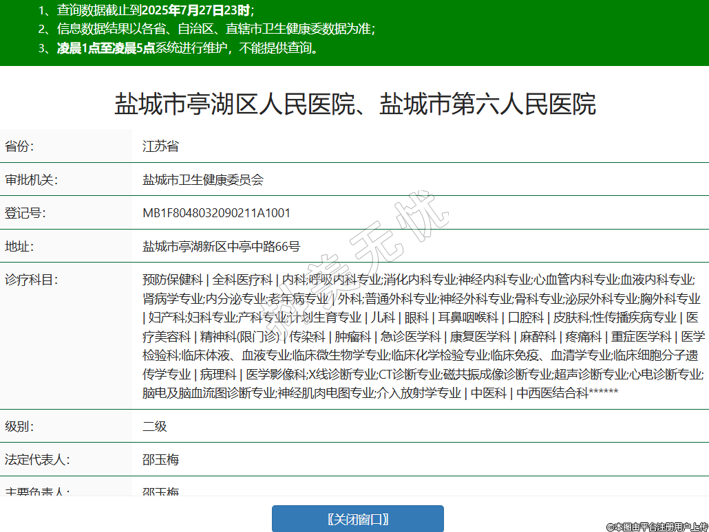 盐城市亭湖区人民医院、盐城市第六人民医院医疗美容