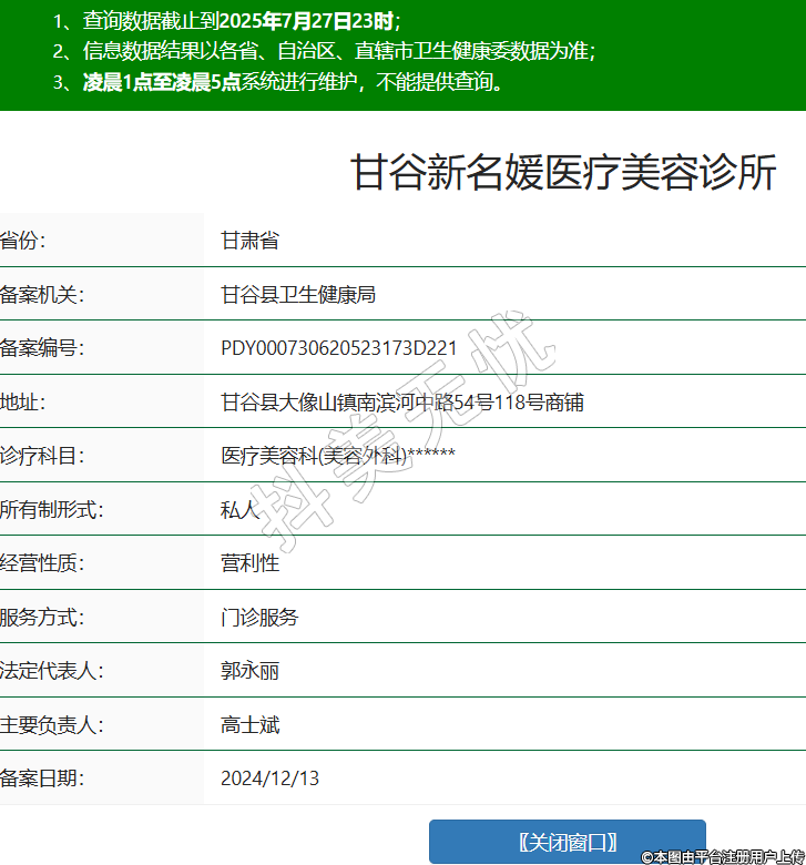 甘谷新名媛医疗美容诊所,诊疗科目:医疗美容科(美容外科)******