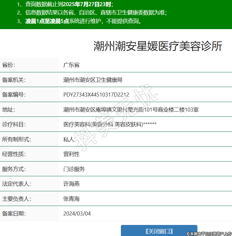 潮州潮安星媛医疗美容诊所,诊疗科目:医疗美容科(美容外科 美容皮肤科)******