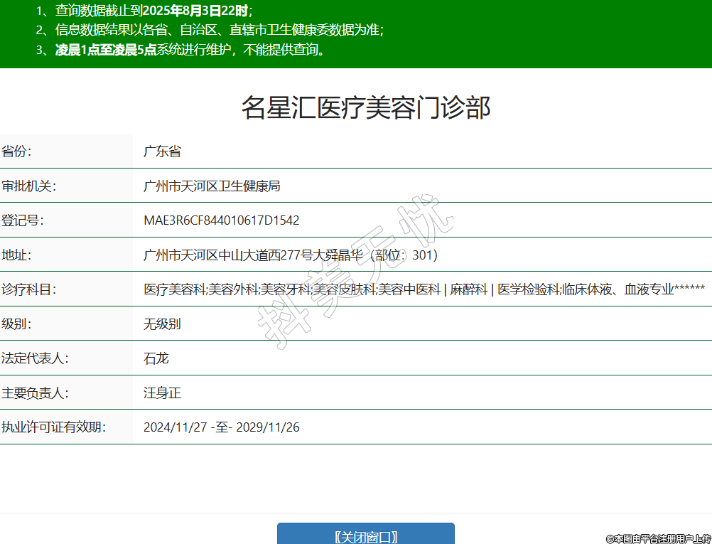 广州名星汇医疗美容诊所成立于2024年,坐落于广州市天河区中山大道西277号大舜晶华(部位:301)。名星汇医疗美容将依托自身坚实学科力量基础,坚持以求美者为中心,以医美技术为核心,始终向广大求美者提供先进、稳定、优质、温馨的医疗美容服务,努力打造一家求美者信任、员工满意、政府放心的优质医疗美容机构, 竭诚为广大求美者服务。