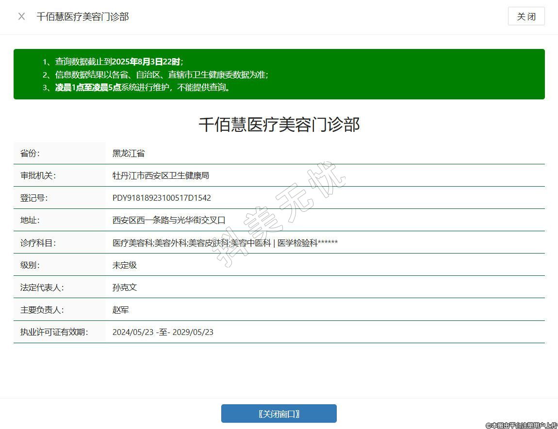 牡丹江千佰慧医疗美容门诊部成立于2024年,位于黑龙江省牡丹江市西安区西一条路光华街1号门,引进大批先进的设备,分设整形美容中心、皮肤美容中心等科室,为爱美者提供形体雕塑、面部塑形、皮肤护疗、抗衰老治疗等医疗美容服务,带给每一位求美者专业的整形美容体验。
