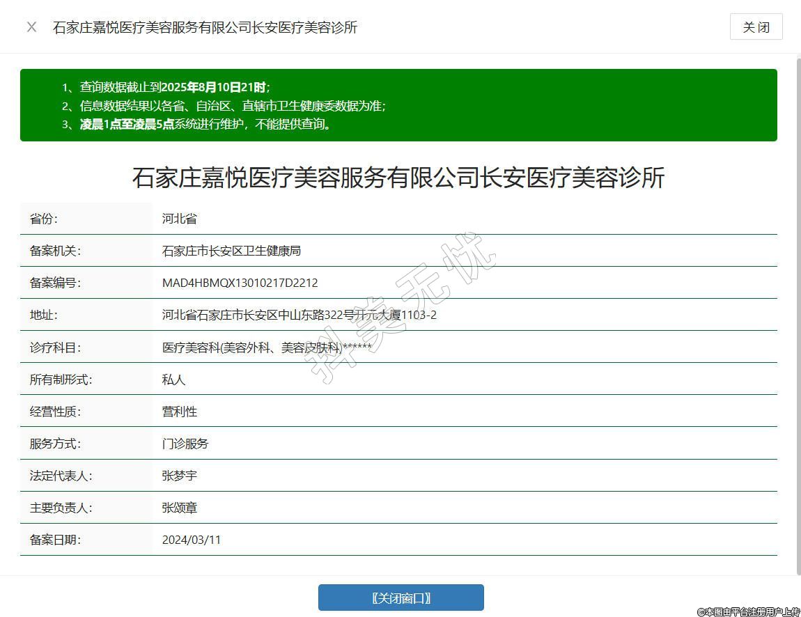 石家庄嘉悦医疗美容诊所创立于2023年,位于河北省石家庄市长安区中山东路322号开元大厦1103-2,,是一家集微创美容、皮肤管理的现代化医美机构,配备先进设备与技术,专注面部年轻化、激光美肤等项目,由经验丰富的医疗团队主理,严格遵循医疗安全规范。
