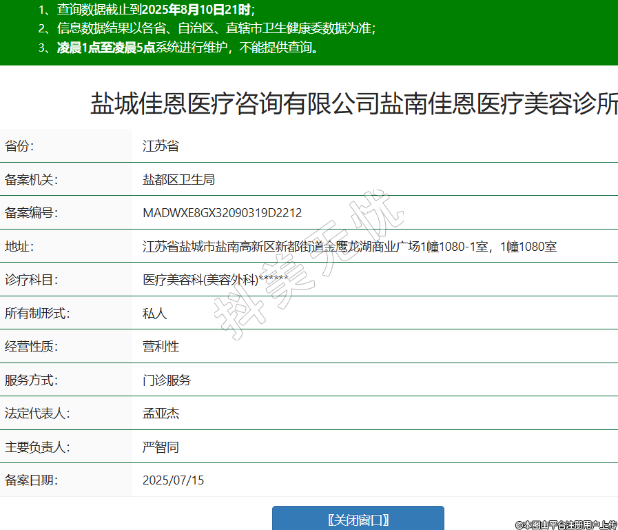 盐城佳恩医疗美容诊所创立于2024年,坐落于盐城市盐南高新区新都街道金鹰龙湖商业广场1幢1080-1室及1080室。诊所拥有整洁舒适的环境,致力于提供专业正规的医疗美容服务。佳恩医疗美容专业团队关注求美者需求,通过细致沟通提供个性化方案。佳恩医疗美容注重服务品质,力求在温馨的氛围中,帮助顾客达成对美的期望,提升自信感受。