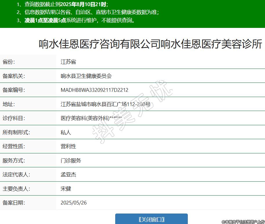响水佳恩医疗咨询有限公司响水佳恩医疗美容诊所,诊疗科目:医疗美容科(美容外科)******