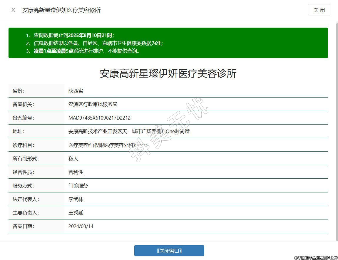 安康星璨伊妍医疗美容诊所成立于2024年,位于陕西省安康市高新技术产业开发区天一城市广场西侧T-0ne时尚街区,环境优雅,设施齐全,为顾客打造舒适安心的变美空间,拥有专业的医疗团队,医师经验丰富,能够根据顾客的不同需求定制个性化方案,在仪器设备上,引进先进医美器械,致力于为每位顾客实现美丽梦想,让您遇见更美的自己 。