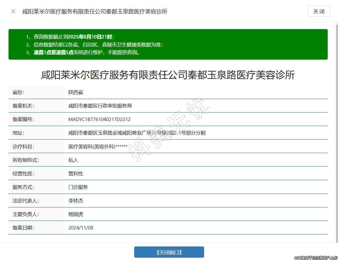 咸阳莱米尔医疗美容诊所成立于2024年,位于陕西省咸阳市秦都区玉泉路金域咸阳商业广场15号楼2层2-1号部分分割,汇聚了多位经验丰富、技术专业的医师团队,严格遵循相关法规,合法合规开展业务,经营范围涵盖医疗美容服务、医疗服务等项目,配备先进设备,为每一位顾客量身定制个性化的美容方案。