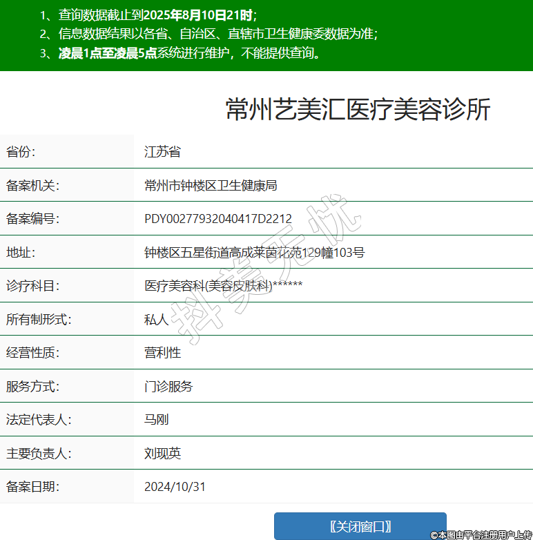 常州艺美汇医疗美容诊所,诊疗科目:医疗美容科(美容皮肤科)******