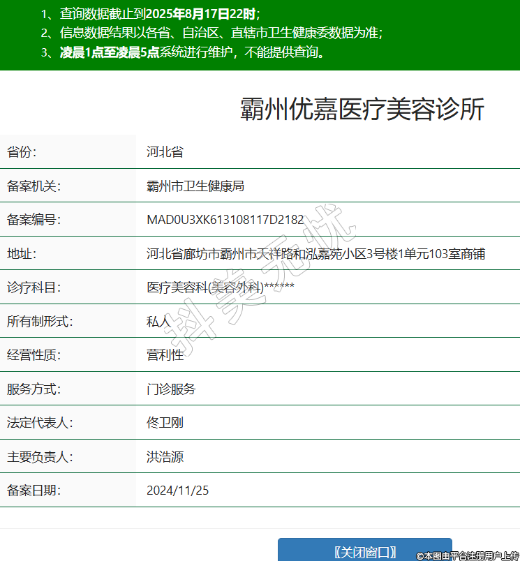 霸州优嘉医疗美容诊所成立于2023年,位于廊坊市霸州市天祥路和泓嘉苑小区3号楼1单元103室商铺。诊所致力于提供专业、安心的医疗美容服务,环境舒适,氛围温馨。我们注重每位求美者的个性化需求,由具备资质的医师团队提供咨询与操作,力求以严谨的态度和细致的服务,帮助求美者实现自然的美丽愿景。