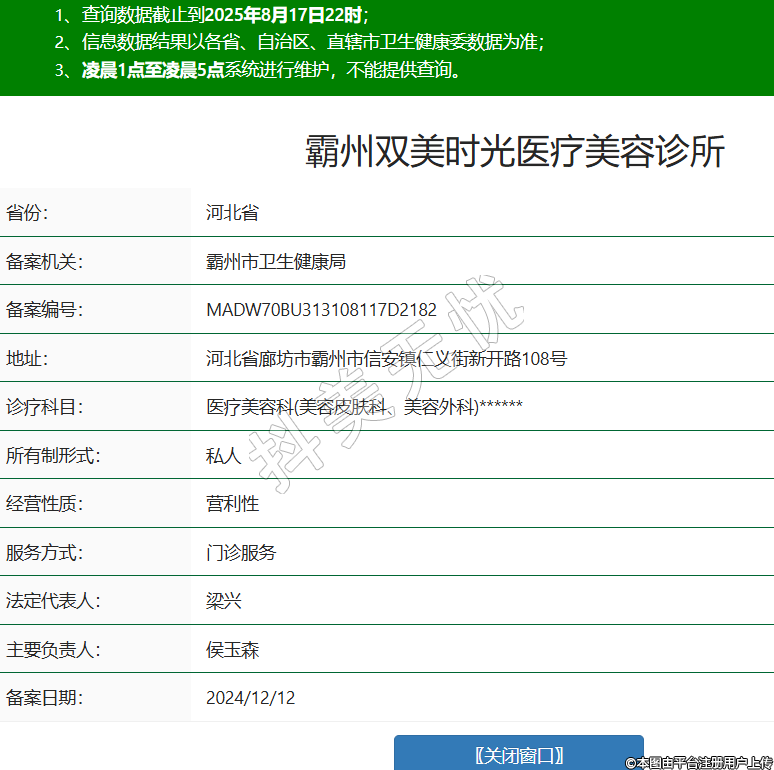 霸州双美时光医疗美容诊所,诊疗科目:医疗美容科(美容皮肤科、美容外科)******