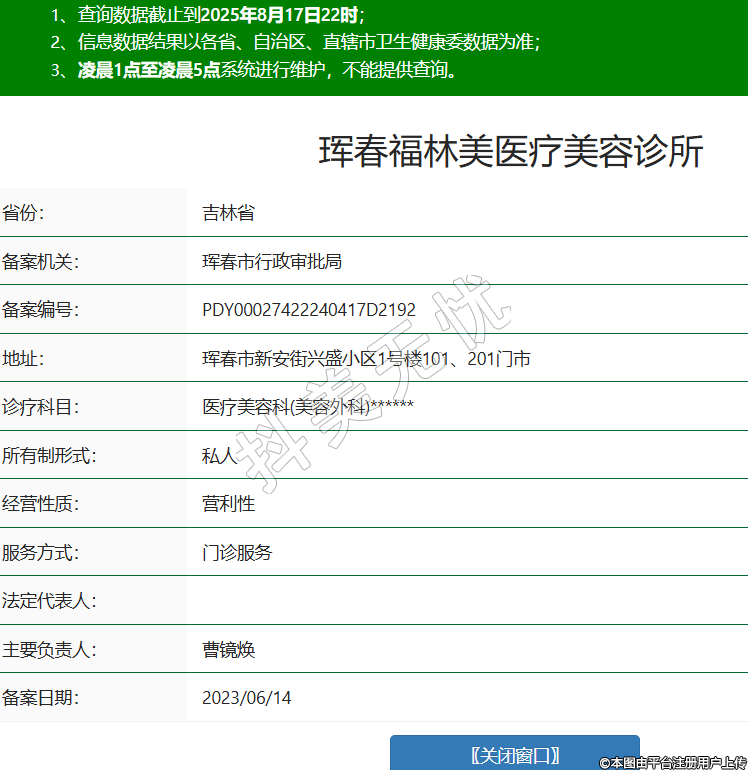 珲春福林美医疗美容诊所,诊疗科目:医疗美容科(美容外科)******