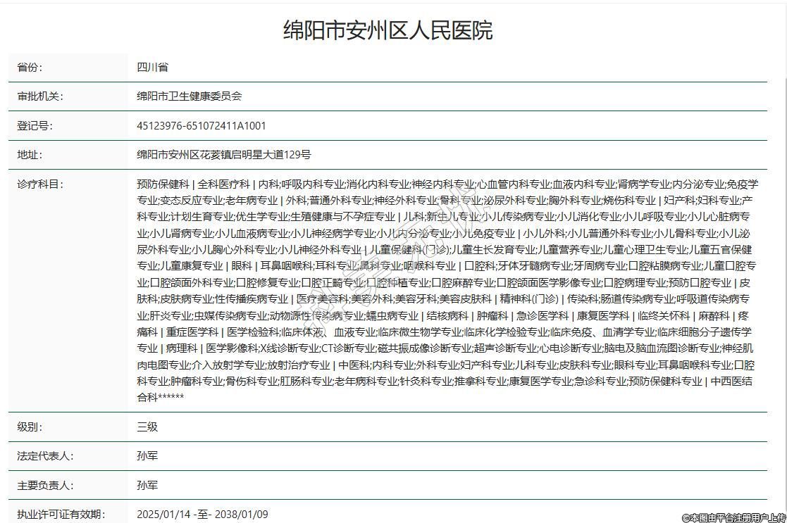 预防保健科 | 全科医疗科 | 内科;呼吸内科专业;消化内科专业;神经内科专业;心血管内科专业;血液内科专业;肾病学专业;内分泌专业;免疫学专业;变态反应专业;老年病专业 | 外科;普通外科专业;神经外科专业;骨科专业;泌尿外科专业;胸外科专业;烧伤科专业 | 妇产科;妇科专业;产科专业;计划生育专业;优生学专业;生殖健康与不孕症专业 | 儿科;新生儿专业;小儿传染病专业;小儿消化专业;小儿呼吸专业;小儿心脏病专业;小儿肾病专业;小儿血液病专业;小儿神经病学专业;小儿内分泌专业;小儿免疫专业 | 小儿外科;小儿普通外科专业;小儿骨科专业;小儿泌尿外科专业;小儿胸心外科专业;小儿神经外科专业 | 儿童保健科(门诊);儿童生长发育专业;儿童营养专业;儿童心理卫生专业;儿童五官保健专业;儿童康复专业 | 眼科 | 耳鼻咽喉科;耳科专业;鼻科专业;咽喉科专业 | 口腔科;牙体牙髓病专业;牙周病专业;口腔粘膜病专业;儿童口腔专业;口腔颌面外科专业;口腔修复专业;口腔正畸专业;口腔种植专业;口腔麻醉专业;口腔颌面医学影像专业;口腔病理专业;预防口腔专业 | 皮肤科;皮肤病专业;性传播疾病专业 | 医疗美容科;美容外科;美容牙科;美容皮肤科 | 精神科(门诊) | 传染科;肠道传染病专业;呼吸道传染病专业;肝炎专业;虫媒传染病专业;动物源性传染病专业;蠕虫病专业 | 结核病科 | 肿瘤科 | 急诊医学科 | 康复医学科 | 临终关怀科 | 麻醉科 | 疼痛科 | 重症医学科 | 医学检验科;临床体液、血液专业;临床微生物学专业;临床化学检验专业;临床免疫、血清学专业;临床细胞分子遗传学专业 | 病理科 | 医学影像科;X线诊断专业;CT诊断专业;磁共振成像诊断专业;超声诊断专业;心电诊断专业;脑电及脑血流图诊断专业;神经肌肉电图专业;介入放射学专业;放射治疗专业 | 中医科;内科专业;外科专业;妇产科专业;儿科专业;皮肤科专业;眼科专业;耳鼻咽喉科专业;口腔科专业;肿瘤科专业;骨伤科专业;肛肠科专业;老年病科专业;针灸科专业;推拿科专业;康复医学专业;急诊科专业;预防保健科专业 | 中西医结合科******