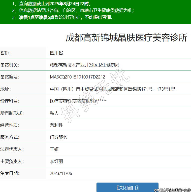 成都高新锦城晶肤医疗美容诊所,诊疗科目:医疗美容科(美容皮肤科)******