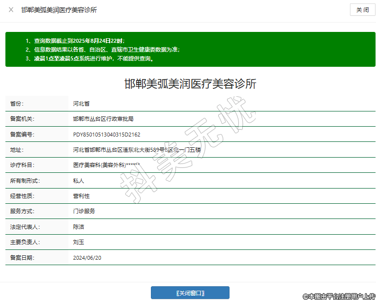 邯郸美弧美润医疗美容诊所有限公司持有合法合规的营业执照,信用代码/税号为91130403MAC0LCH12D。卫生部门许可表明该诊所严格遵循医院运营规范,在医疗质量把控方面达到一定标准。从场地规划、设施配备到医护人员资质要求等,都经过严格审核,确保能提供安心、有效的医疗美容服务,保护患者就医安心和权益。