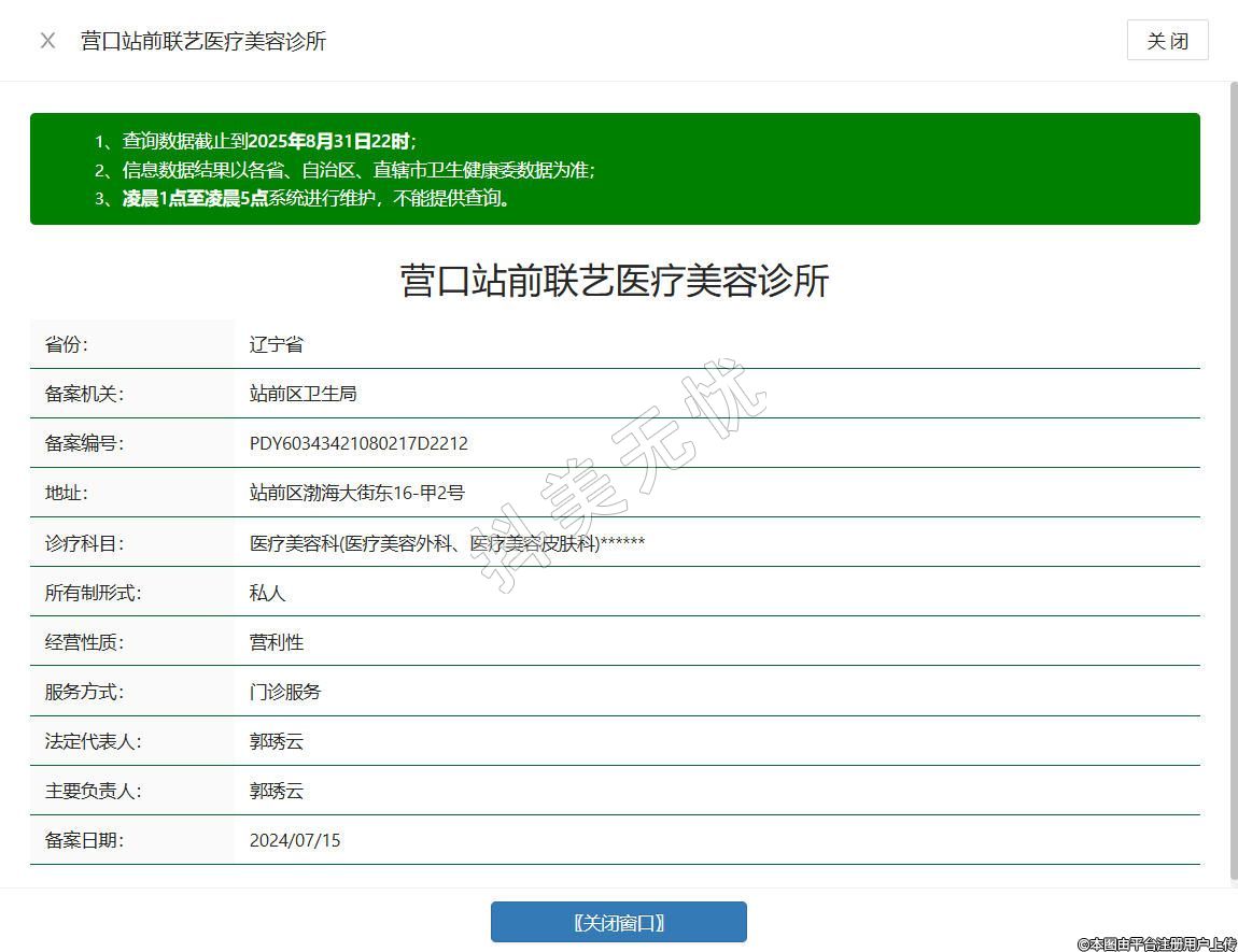 营口联艺医疗美容诊所成立于2024年,位于辽宁省营口市站前区渤海大街东16-甲2号,依法取得医疗美容服务许可,严格遵循相关法规开展业务,拥有专业的医护团队,经验丰富,致力于为每一位顾客提供贴心服务,配备多种先进的医疗美容设备,为各类诊疗项目提供有力支持,业务范围涵盖医疗美容服务等,秉持专业、安全、诚信的理念,旨在帮助顾客实现美丽与健康的追求。