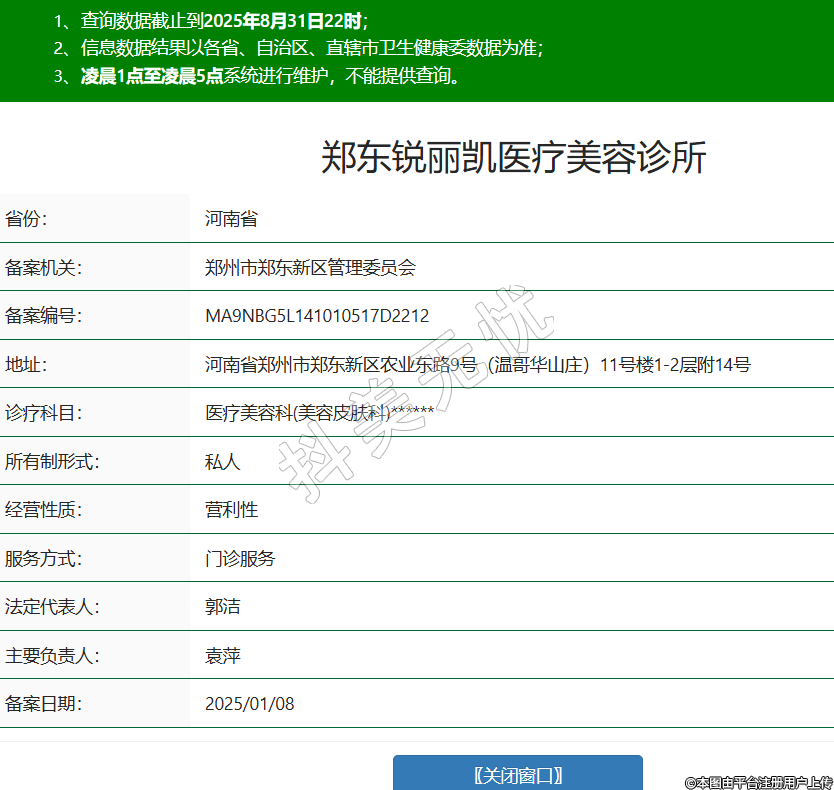 郑东锐丽凯医疗美容诊所,诊疗科目:医疗美容科(美容皮肤科)******