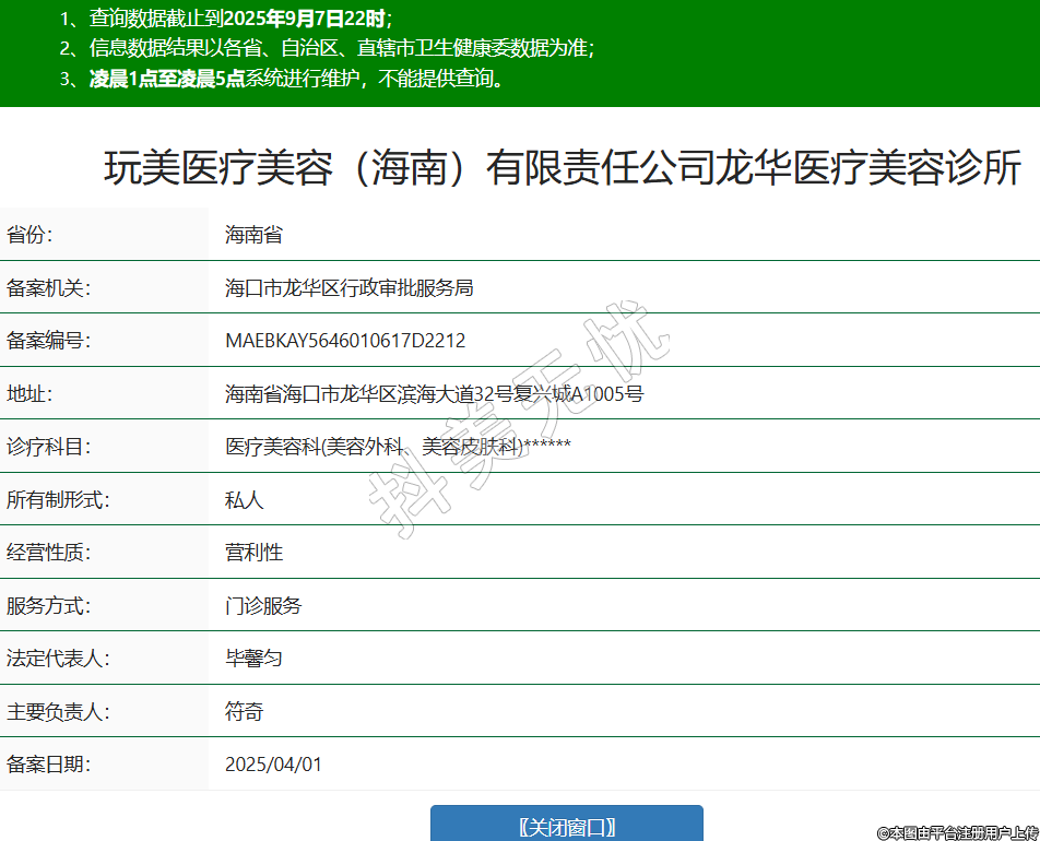 玩美医疗美容(海南)有限责任公司龙华医疗美容诊所,诊疗科目:医疗美容科(美容外科、美容皮肤科)******