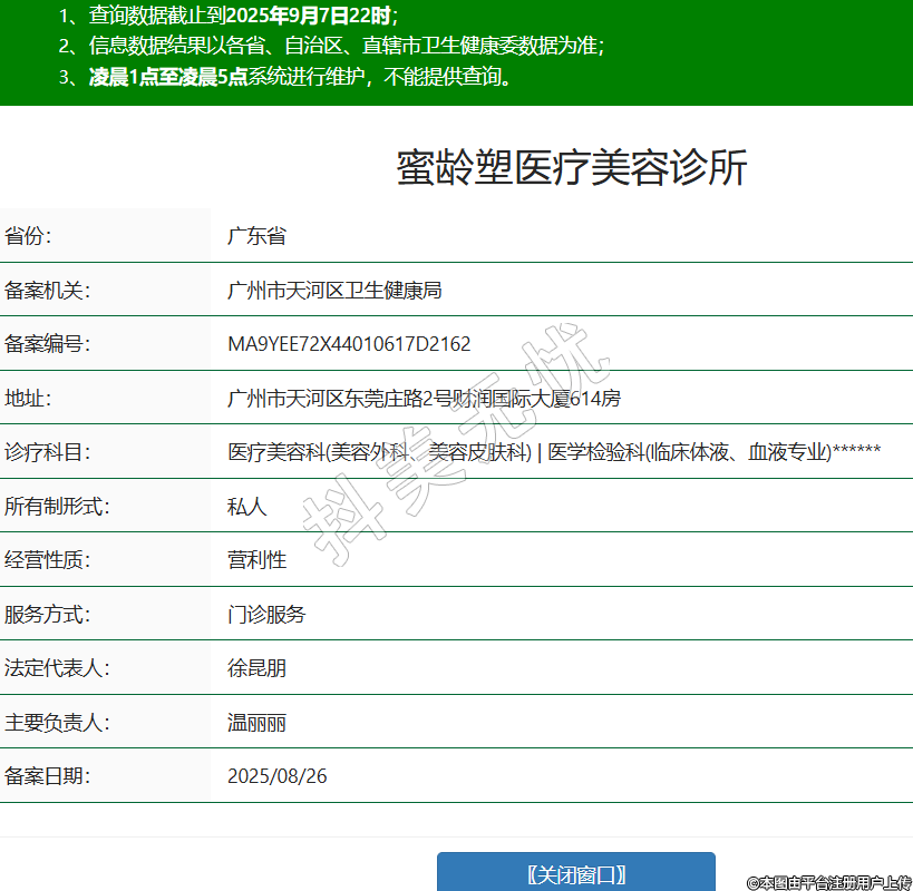 蜜龄塑医疗美容诊所,诊疗科目:医疗美容科(美容外科、美容皮肤科) | 医学检验科(临床体液、血液专业)******