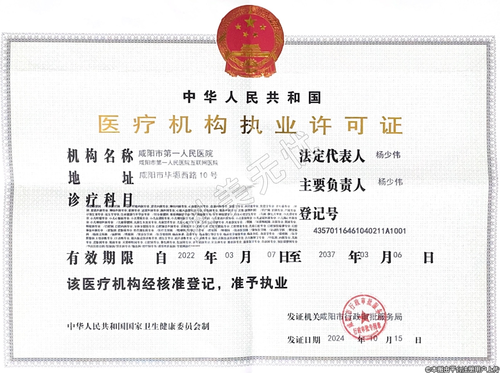 发证机关:咸阳市卫生健康委员会