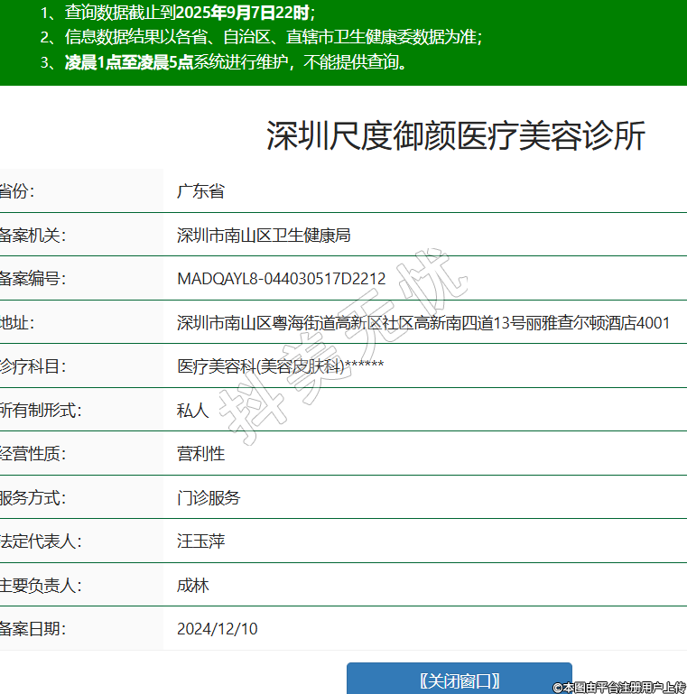 深圳尺度御颜医疗美容诊所,诊疗科目:医疗美容科(美容皮肤科)******