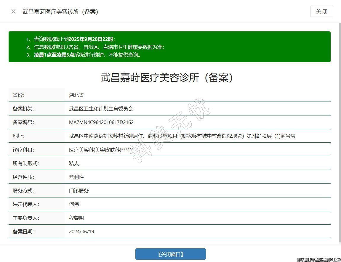 武汉嘉莳医疗美容诊所成立于2022年,位于武汉市武昌区中南路街姚家岭村新建居住、商业设施项目(姚家岭村城中村改造K2地块)第7幢1-2层(1)商号房,是经市场监管部门核准设立的正规医疗美容机构,组建了专业医疗团队,可开展激光美容、注射美容等皮肤美容项目,始终秉持合规经营理念,严格遵守医疗操作规程与卫生标准,以专业医疗为基石,以规范服务为核心,致力于为顾客提供安全可靠的医疗美容服务体验。