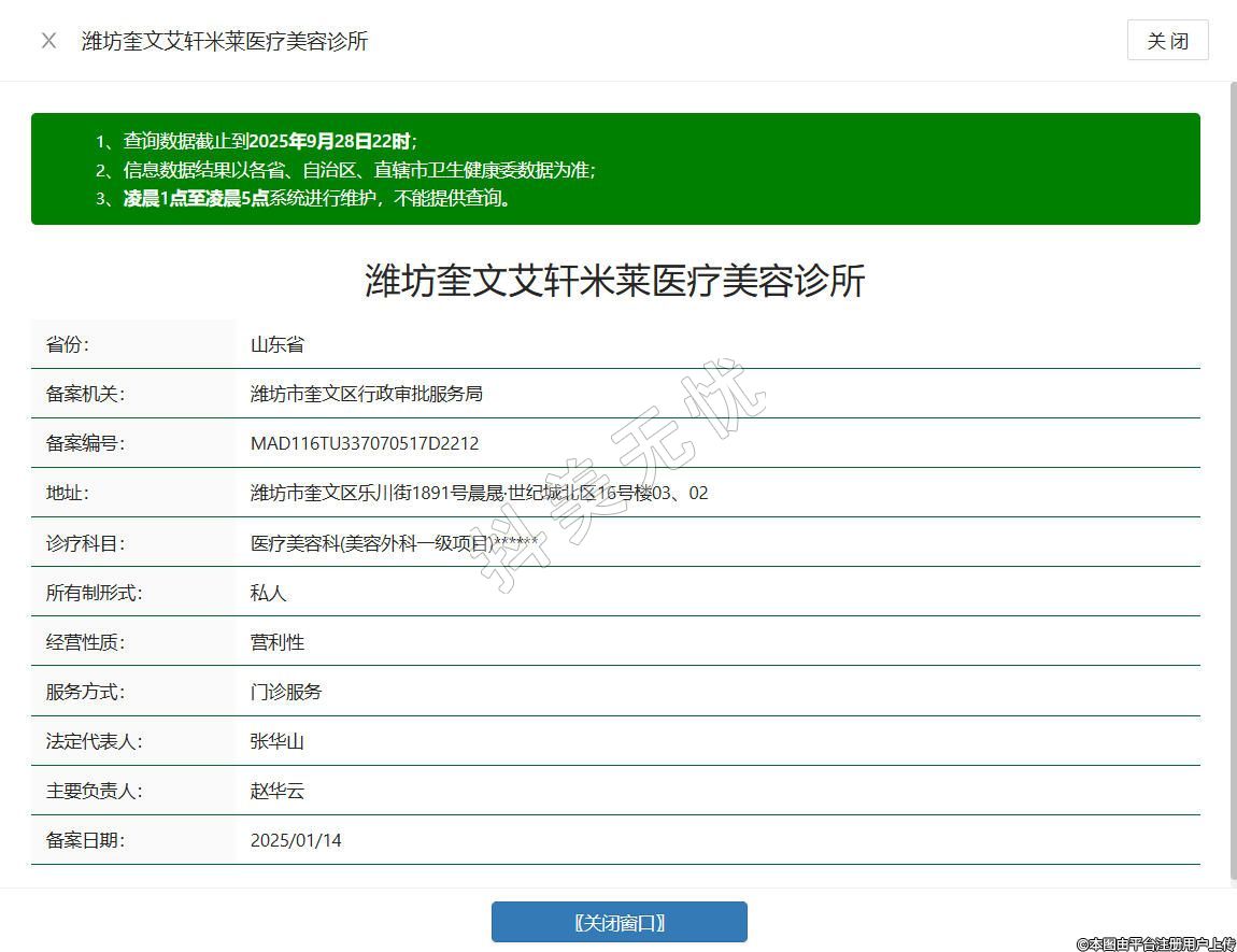 潍坊艾轩米莱医疗美容诊所成立于2023年,位于潍坊市奎文区乐川街1891号晨晟·世纪城北区16号楼03、02,是经批准设立的正规医疗美容机构,可依法开展许可范围内的医疗美容服务、生活美容服务等项目,诊疗范围涵盖眼部整形、鼻部整形、面部填充等常见医疗美容项目,秉持合规经营理念,严格遵循医疗服务规范,致力于为顾客提供规范、专业的医疗美容相关服务。