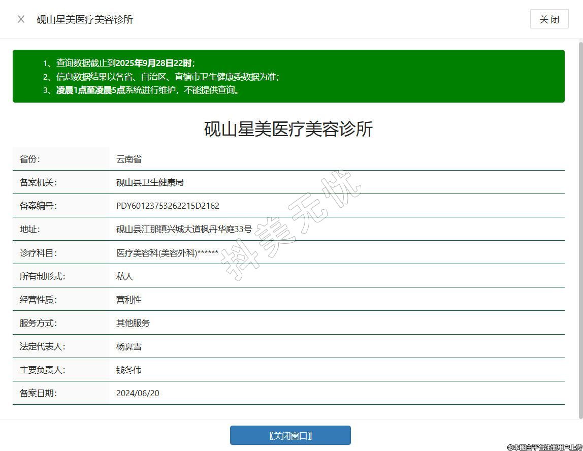 砚山星美医疗美容诊所于2017年成立,坐落于云南省文山壮族苗族自治州砚山县江那镇兴城大道枫丹华庭33号,持有合法资质,经营范围涵盖医疗美容服务、生活美容服务等许可项目,坚守合规经营原则,依托专业服务团队开展业务,致力于为当地顾客提供规范的医疗美容服务。