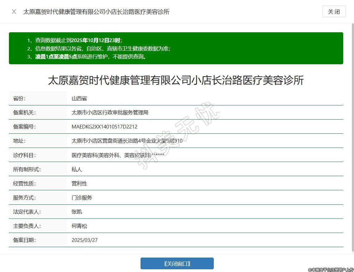 太原嘉贺时代医疗美容诊所成立于2025年,位于太原市小店区营盘街道长治路4号金业大厦9层910,是经审批备案的专业医疗美容机构,获批开展医疗服务、生活美容服务等许可项目,建立规范服务流程,配备专业服务团队,聚焦顾客美容需求,提供定制化咨询与诊疗方案,致力于在合规框架下为顾客提供专业、安心的医疗美容服务。
