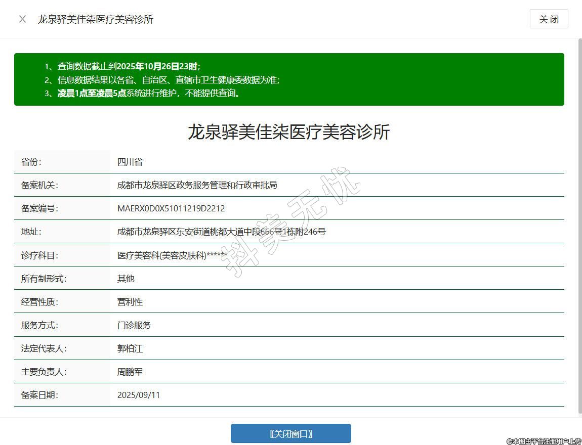 成都美佳柒医疗美容诊所成立于2025年,位于成都市龙泉驿区东安街道桃都大道中段666号1栋附246号,是经相关部门批准设立的正规医疗美容机构,依据许可范围,诊所可开展医疗美容服务、生活美容服务等项目,秉持规范医疗理念,坚守行业准则,致力于在合规框架内为顾客提供专业、贴心的美容健康相关服务。