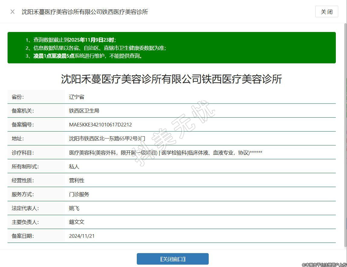 沈阳禾蔓医疗美容诊所成立于2024年,位于沈阳市铁西区北一东路65甲2号3门,是经相关部门批准设立的正规医疗美容机构,坚守 “合规行医、安全塑美” 理念,依法开展医疗美容服务、生活美容服务及诊所服务,汇聚专业医护团队,具备扎实的医学功底与临床经验,配备合规医疗设备与认证产品,为顾客提供安心、专业的变美体验。