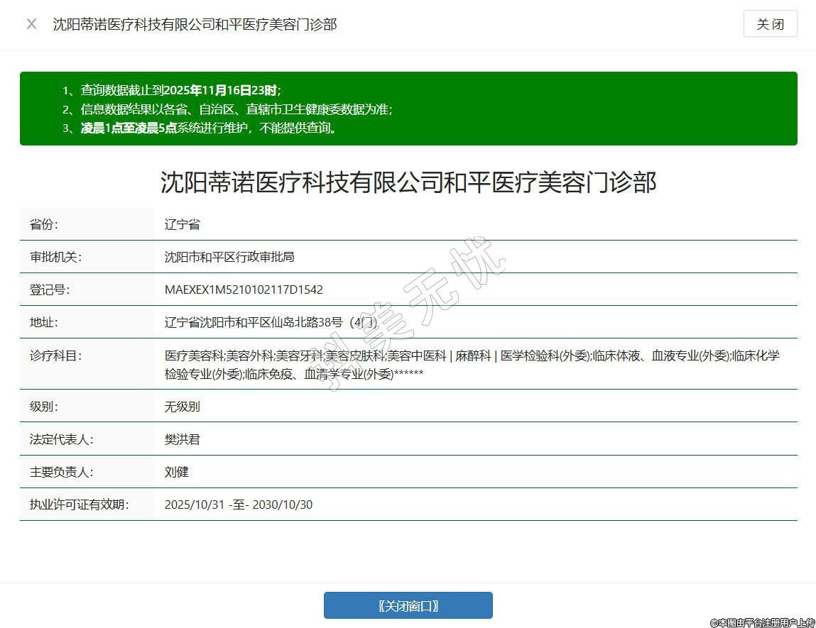 沈阳蒂诺医疗科技有限公司和平医疗美容门诊部