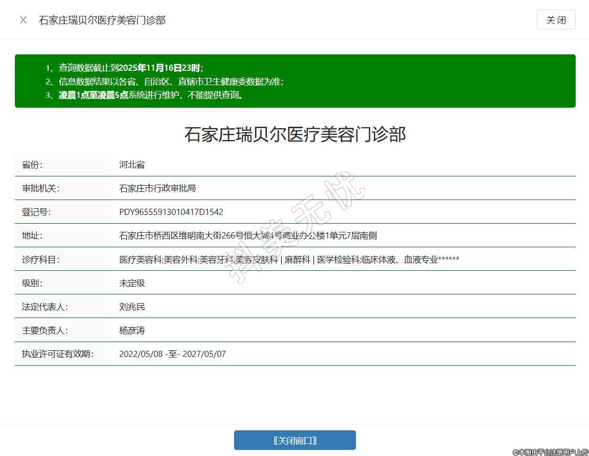 石家庄瑞贝尔医疗美容门诊部成立于2016年,坐落于石家庄市桥西区维明南大街266号恒大城4号商业办公楼1单元7层南侧,是经河北省卫生行政部门批准的正规医美机构,设有美容外科、美容皮肤科、微整形专科等多个科室,汇聚 10 年以上临床经验的专业医师团队,提供眼部整形、皮肤抗衰、形体管理等多元化项目,从术前咨询到术后回访全程护航,为求美者提供规范、贴心的医美体验。