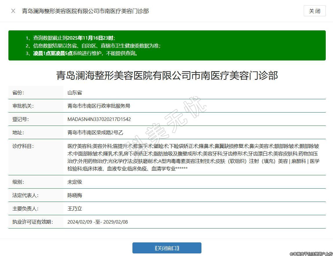 青岛澜海整形美容医院有限公司市南医疗美容门诊部