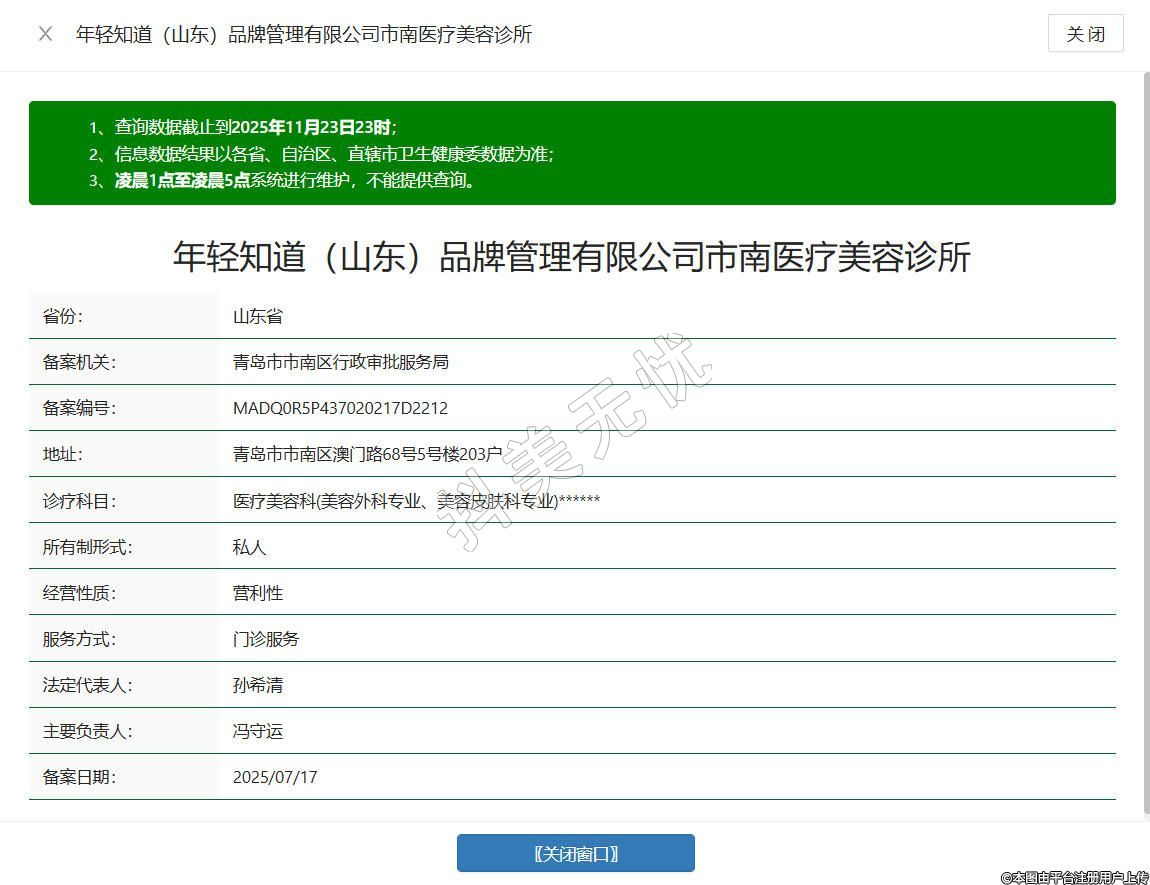 青岛年轻知道医疗美容诊所成立于2024年,位于青岛市市南区澳门路68号5号楼203户,是经合规审批的专业医美机构,坚守医疗本质,汇聚具备《医师资格证书》与《医师执业证书》的专业团队,专注于贴合年轻群体需求的轻医美与皮肤管理服务,时建立完善的术前评估与术后随访制度,全程为顾客提供安心保障,致力于为追求自然美的年轻群体,提供专业、靠谱、贴心的医美服务。