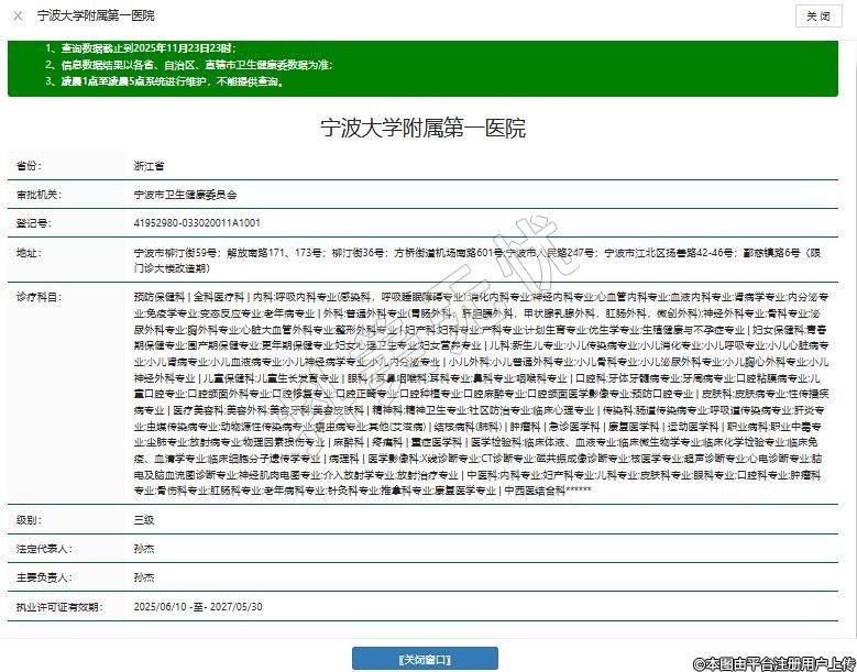 宁波市柳汀街59号;解放南路171、173号;柳汀街36号;方桥街道机场南路601号;宁波市人民路247号;宁波市江北区扬善路42-46号;鄞慈镇路6号(限门诊大楼改造期)