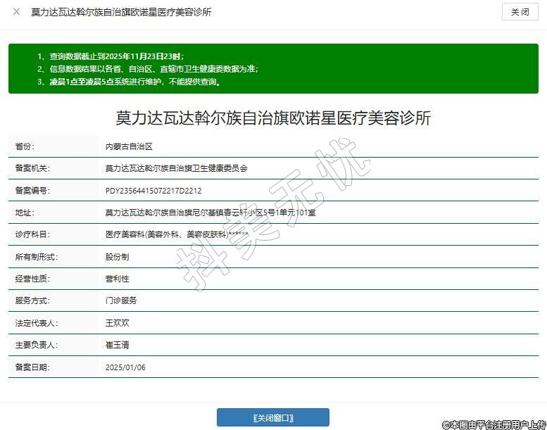 呼伦贝尔欧诺星医疗美容诊所成立于2024年,位于呼伦贝尔市莫力达瓦达斡尔族自治旗尼尔基镇青云轩小区5号1单元101室。作为当地专业医疗美容服务机构,诊所专注于为顾客提供合规、安全的医疗美容项目,涵盖皮肤护理、注射美容及个性化形象设计等领域。