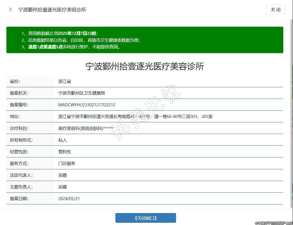 宁波拾壹逐光医疗美容诊所成立于2024年,位于浙江省宁波市鄞州区潘火街道长寿南路451-457号,潘一巷60-80号三层303、305室,是经当地卫健部门批准设立的合规医美机构,具备合法医疗服务资质,汇聚了一批拥有专业资质与丰富临床经验的医美医师,涵盖光电美肤、注射美容、面部年轻化等合规诊疗服务,秉持规范诊疗原则,以个性化服务为核心,为求美者打造安全、专业的变美体验。