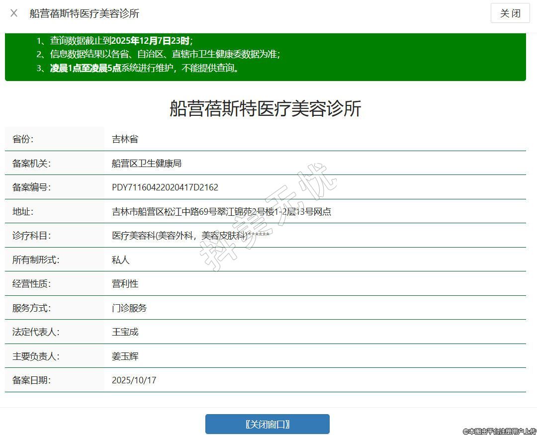 吉林蓓斯特医疗美容诊所创建于2024年,坐落于吉林市船营区松江中路69号翠江锦苑2号楼1-2层13号网点。诊所坚守医疗规范,以合规执业为核心,打造舒适安心的诊疗环境,设置独立咨询与治疗空间,充分保障隐私。