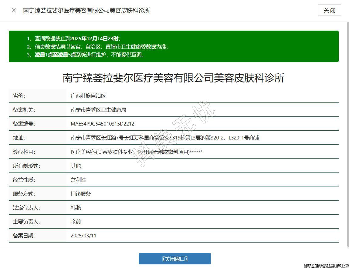 南宁臻荟拉斐尔医疗美容诊所成立于2024年,位于南宁市青秀区长虹路7号长虹万科里商场第S2S319栋第L3层的第320-2、L320-1号商铺,是经南宁市青秀区卫生健康局备案的合规医疗美容机构,专注医疗美容科(美容皮肤科专业),限开展微创或无创项目,汇聚了涵盖美容外科、皮肤美容等领域的专业医护团队,配备专业医美设备,结合个性化诊疗思路,为顾客提供规范、安心的医疗美容服务。
