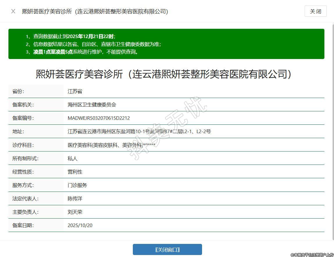 连云港熙妍荟医疗美容诊所成立于2024年,位于江苏省连云港市海州区东盐河路10-1号盐河街B7#二层L2-1、L2-2号,是一家依法设立的专业医疗美容机构,持有合法有效的相关执业许可,组建专业医护团队,服务范围涵盖许可范围内的医疗美容、生活美容等项目,同时提供健康咨询、美甲及相关产品销售等配套服务,诊疗环境规范,设备与产品均通过正规渠道采购,确保来源合法合规,致力于为顾客打造安心、专业的变美体验。