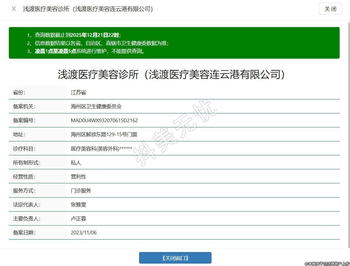 连云港浅渡医疗美容诊所成立于2023年,位于江苏省连云港市海州区新浦街道解放东路129-15号门面,是经卫生健康部门批准设立的正规医疗美容机构,持有合法有效的医疗机构执业许可证,组建专业医护团队,配备合规医疗设备与产品,坚持来源合法、渠道正规的采购标准,以诚信透明为服务理念,公开项目信息与价格明细,尊重并保护患者隐私,致力于为顾客提供规范、安心的医疗美容体验。
