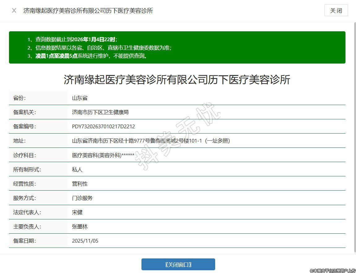 济南缘起医疗美容诊所成立于2025年,位于山东省济南市历下区经十路9777号鲁商国奥城2号楼101-1(一址多照),依法取得《医疗机构执业许可证》的合规医疗美容机构,汇聚具备相应执业资格的专业医师团队,诊疗活动严格限定在核准科目范围内。