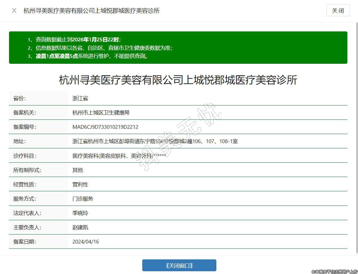 杭州寻美医疗美容诊所成立于2023年,位于浙江省杭州市上城区彭埠街道东宁路586号悦郡城2幢106、107、108-1室,取得正规医疗执业资质,是一家专注皮肤诊疗与轻医美领域的专业医美机构,组建了资深医师团队,深耕皮肤光电治疗、针剂微调等领域,引进先进的医美设备并优化操作流程,所有操作均由专业医师完成。