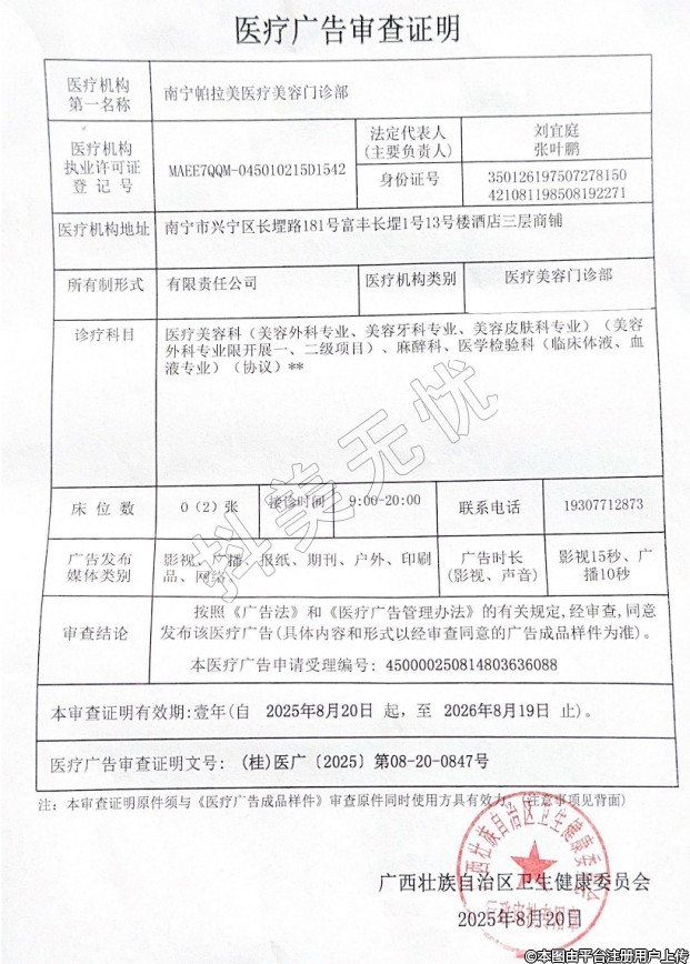 南宁帕拉美医疗美容门诊部,集研究、开发、医疗、服务为一体的高科技医疗美容企业,作为创新派医疗美容开拓者,长期致力于研发市场的先进医学技术,凭借值得信赖的技术实力闻名于世。始终秉持“科学、严谨、专注、创新”的研发理念,不断向客户提供高品质的项目与服务,为医疗美容事业作出贡献。我们还为客户提供后续服务;包括专业详细的指导建议、专人心态美学辅导、贴心高效的售后服务等。