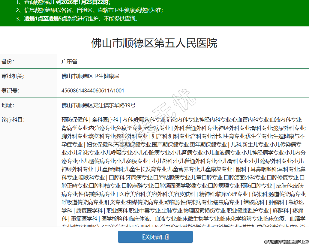 省份:广东省审批机关:佛山市顺德区卫生健康局登记号:45608614844060611A1001地址:佛山市顺德区龙江镇东华路39号诊疗科目:预防保健科 | 全科医疗科 | 内科;呼吸内科专业;消化内科专业;神经内科专业;心血管内科专业;血液内科专业;肾病学专业;内分泌专业;免疫学专业;老年病专业 | 外科;普通外科专业;神经外科专业;骨科专业;泌尿外科专业;胸外科专业;烧伤科专业;整形外科专业 | 妇产科;妇科专业;产科专业;计划生育专业;优生学专业;生殖健康与不孕症专业 | 妇女保健科;青春期保健专业;围产期保健专业;更年期保健专业 | 儿科;新生儿专业;小儿传染病专业;小儿消化专业;小儿呼吸专业;小儿心脏病专业;小儿肾病专业;小儿血液病专业;小儿神经病学专业;小儿内分泌专业;小儿遗传病专业;小儿免疫专业 | 小儿外科;小儿普通外科专业;小儿骨科专业;小儿泌尿外科专业;小儿神经外科专业 | 儿童保健科;儿童生长发育专业;儿童营养专业;儿童康复专业 | 眼科 | 耳鼻咽喉科;耳科专业;鼻科专业;咽喉科专业 | 口腔科;牙周病专业;口腔粘膜病专业;儿童口腔专业;口腔颌面外科专业;口腔修复专业;口腔正畸专业;口腔种植专业;口腔麻醉专业;口腔颌面医学影像专业;口腔病理专业;预防口腔专业 | 皮肤科;皮肤病专业;性传播疾病专业 | 医疗美容科;美容外科;美容皮肤科 | 精神科;临床心理专业 | 传染科;肠道传染病专业;呼吸道传染病专业;肝炎专业;虫媒传染病专业;动物源性传染病专业;蠕虫病专业 | 结核病科 | 肿瘤科 | 急诊医学科 | 康复医学科 | 职业病科;职业中毒专业;尘肺专业;物理因素损伤专业;职业健康监护专业 | 麻醉科 | 疼痛科 | 重症医学科 | 医学检验科;临床体液、血液专业;临床微生物学专业;临床化学检验专业;临床免疫、血清学专业;临床细胞分子遗传学专业 | 病理科 | 医学影像科;X线诊断专业;CT诊断专业;磁共振成像诊断专业;核医学专业;超声诊断专业;心电诊断专业;脑电及脑血流图诊断专业;介入放射学专业 | 中医科;内科专业;妇产科专业;儿科专业;皮肤科专业;眼科专业;耳鼻咽喉科专业;口腔科专业;肿瘤科专业;骨伤科专业;老年病科专业;针灸科专业;推拿科专业;康复医学专业;预防保健科专业 | 中西医结合科******级别:三级法定代表人:肖长华主要负责人:肖长华执业许可证有效期:2020/06/08 -至- 2035/06/07 -