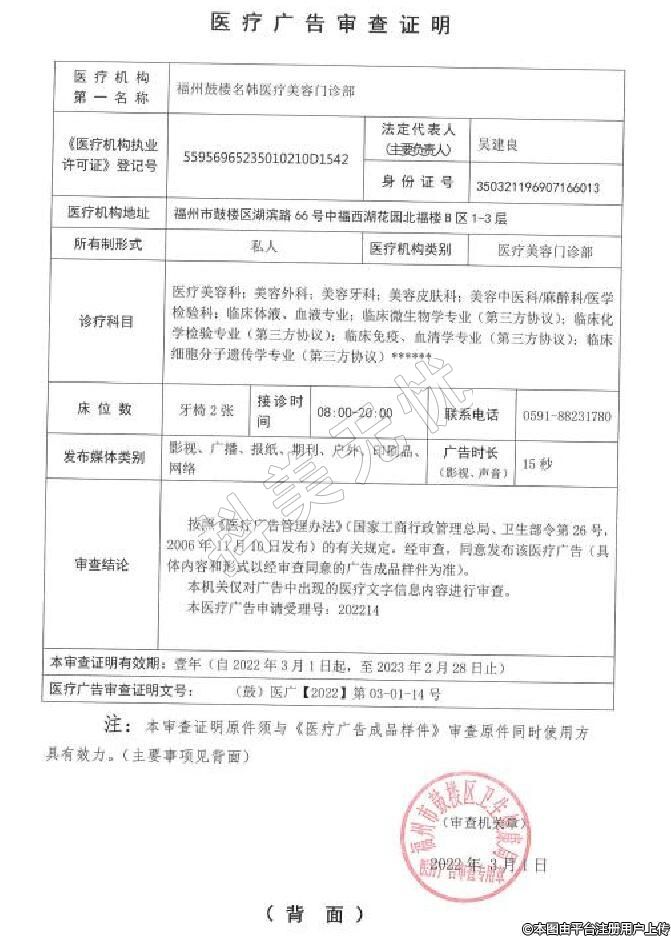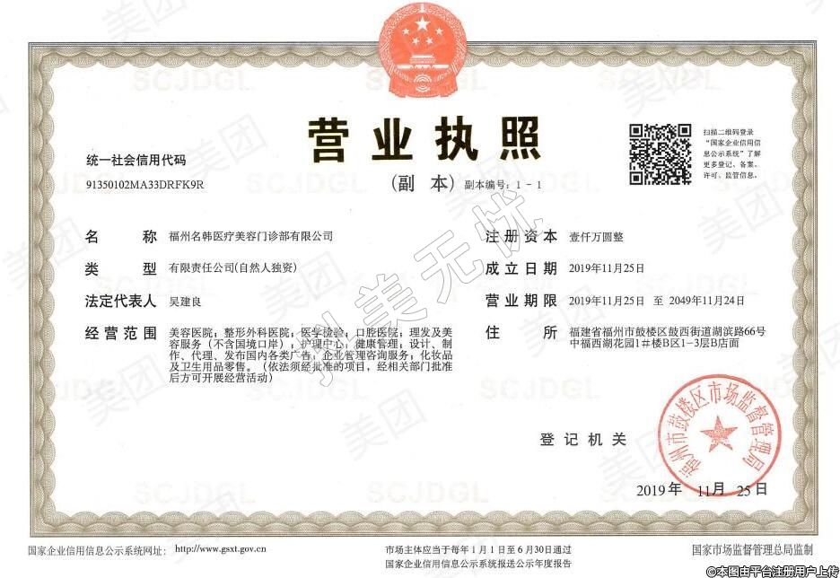 机构名称:福州鼓楼名韩医疗美容门诊部