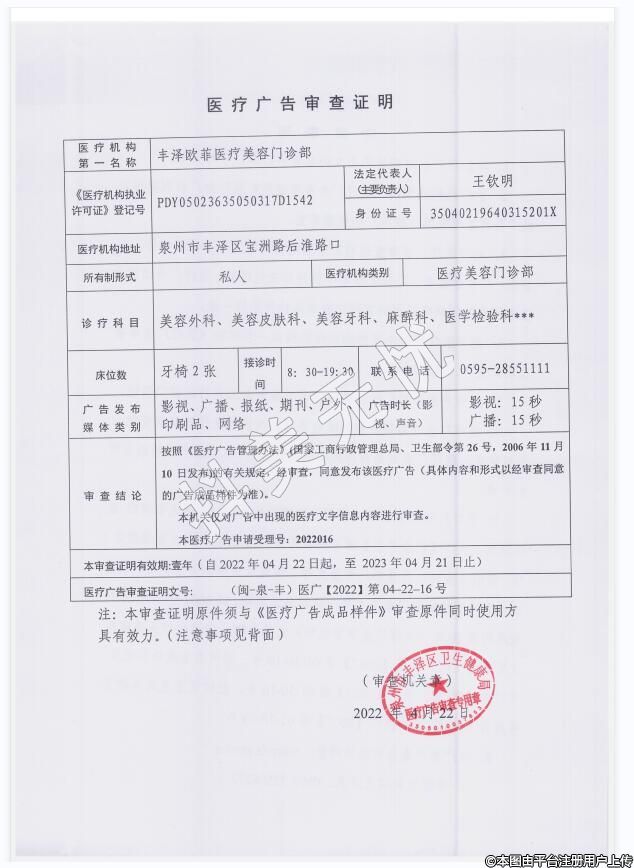 机构名称:丰泽欧菲医疗美容门诊部