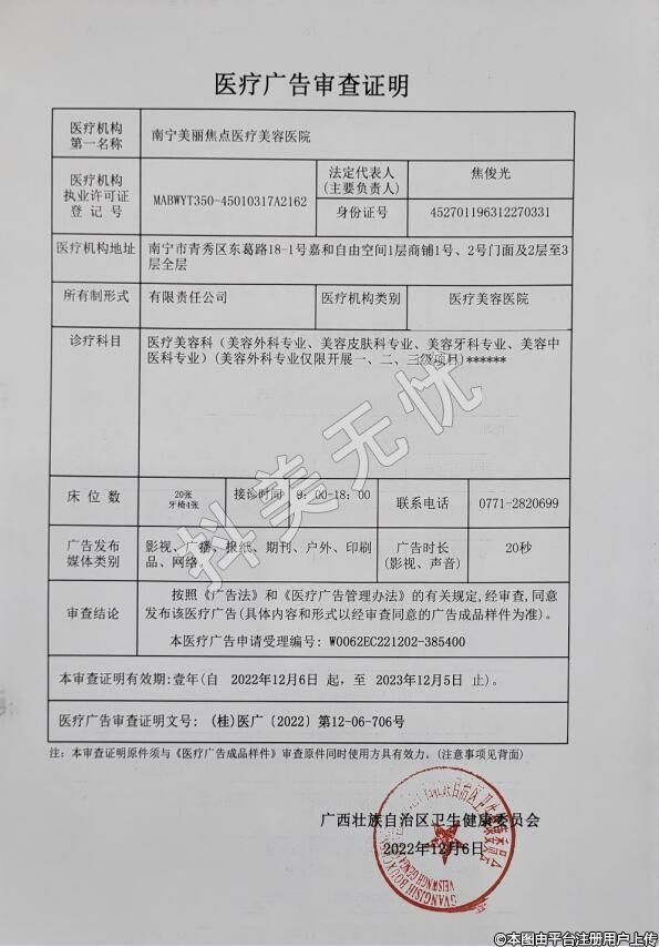 医疗机构名称:南宁美丽焦点医疗美容医院