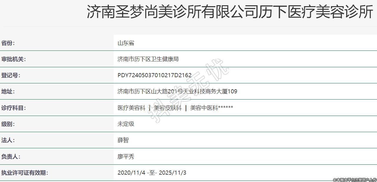 济南圣梦尚美医疗美容2019年11月22日成立,地址:济南市历下区山大路201号天业科技商务大厦109,诊疗科目:医疗美容科 | 美容皮肤科 | 美容中医科******