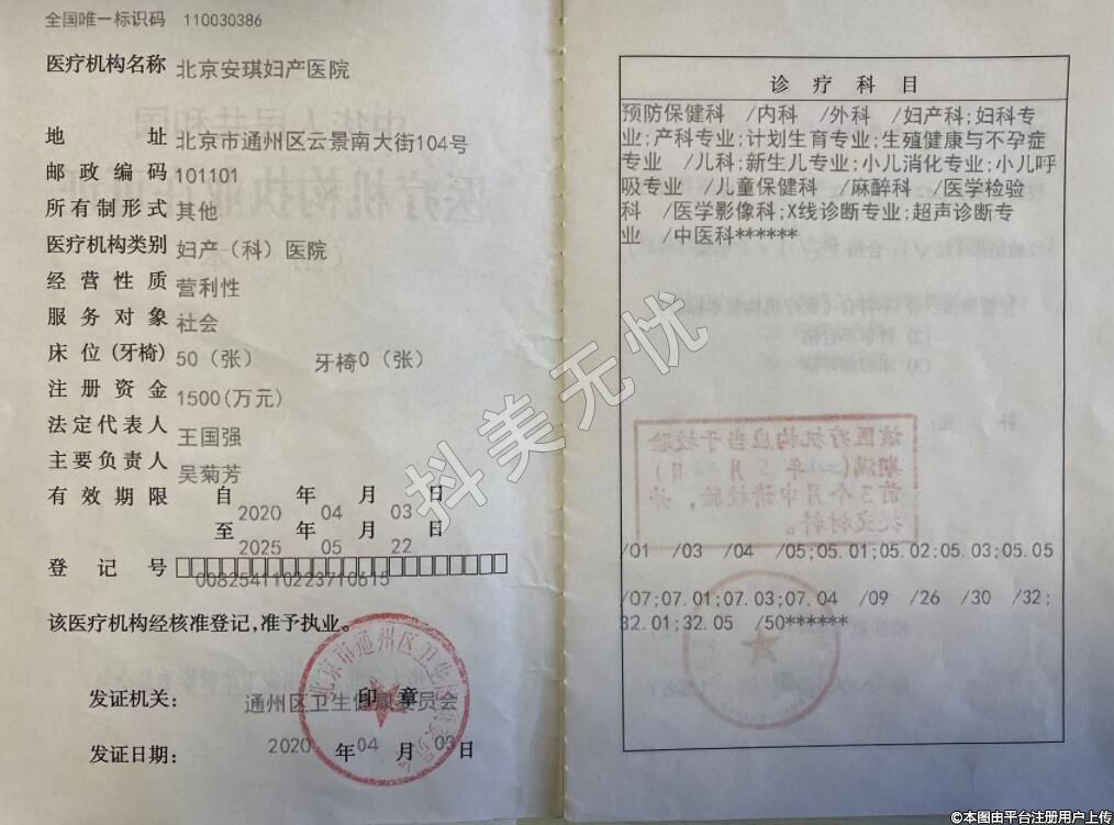 发证机关:通州区卫生健康委员会